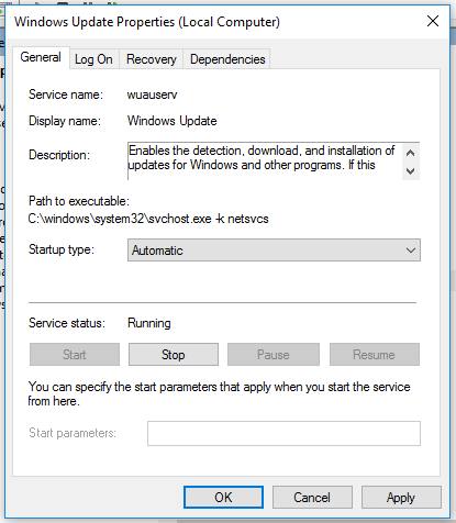 Klik Windows Update - Kemudian Pilih Startup Type : Automatic